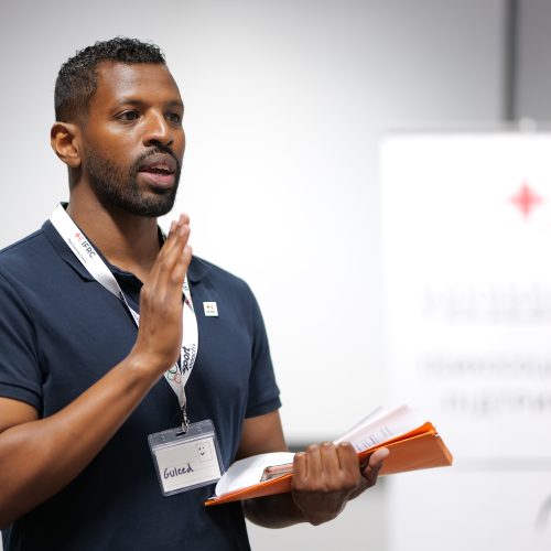 Training delivered by MHPSS Technical Advisor Guleed Dualeh and CHJS Founder Megan Bartlett, within the scope of the project funded by the Olympic Refuge Foundation, in collaboration with local sport organizations.