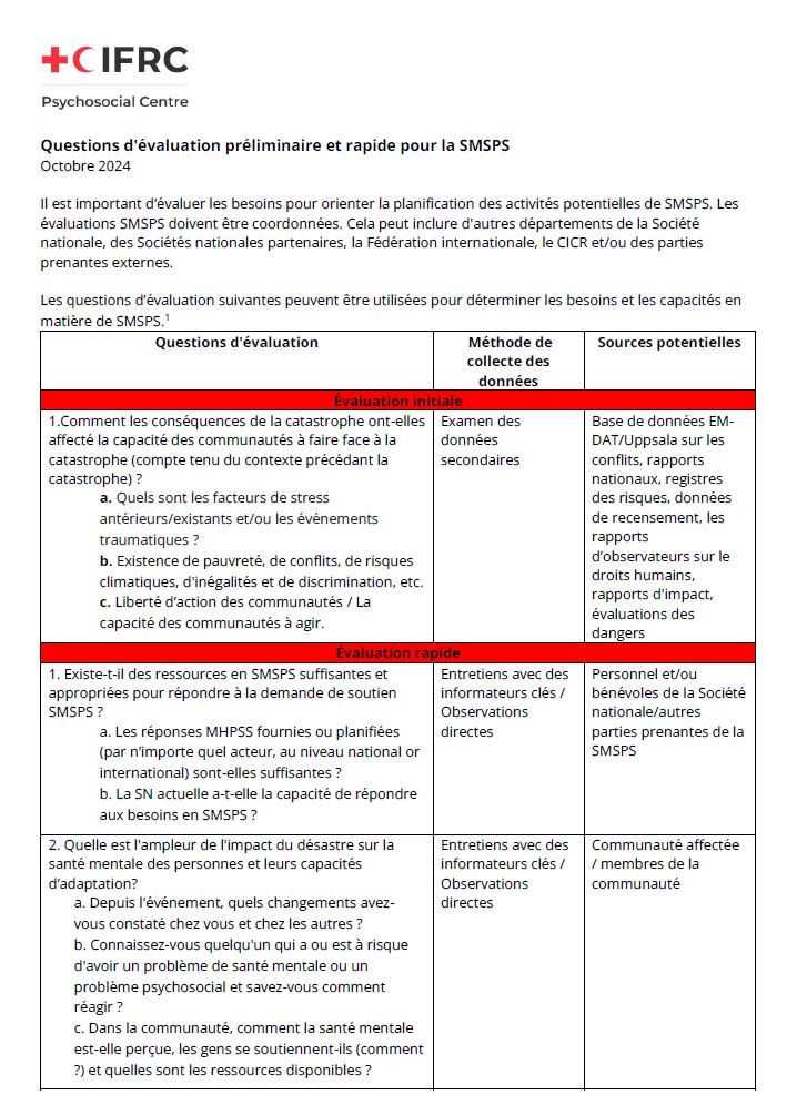 Initial and rapid assessment questions for MHPSS - French