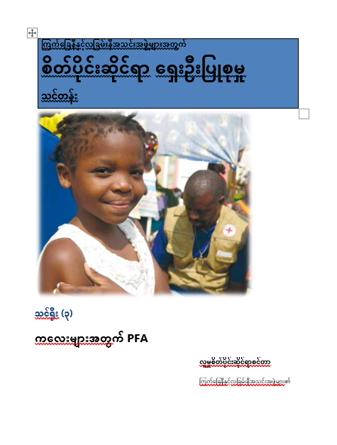 This training module is one of four on psychological first aid, which accompany a set of materials on PFA. These include: an introductory book called A Guide to Psychological First Aid for Red Cross and Red Crescent Societies and a small booklet, A Short introduction to Psychological First Aid for Red Cross and Red Crescent Societies.